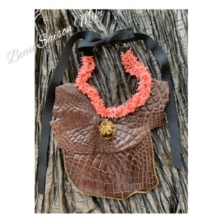 I made a necklace that combines brown crocodile leather with pink coral.