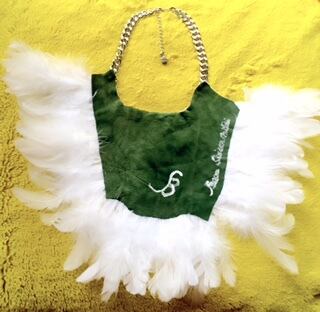 素材:クロコダイルレザー、チェーン、スエードレザー、パールチャーム、羽